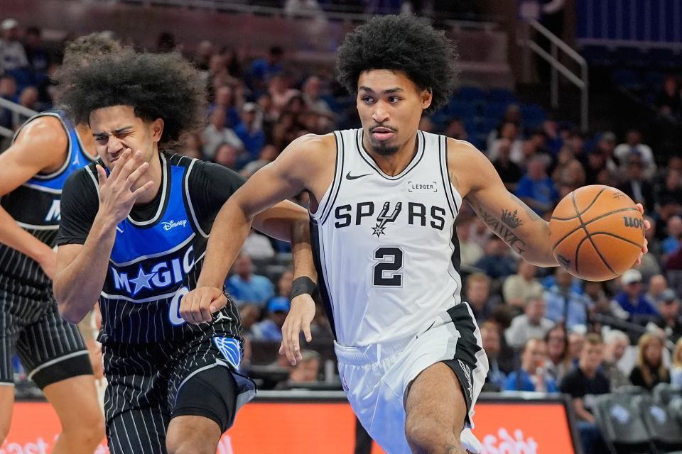 马刺上一场主场125-119战胜灰熊,魔术过去3场连赢76人、活塞与公牛收获3连胜。本场马刺缺少文班亚马、麦克劳林与卡斯尔,魔术缺少班凯罗、大瓦格纳与卡斯尔顿。首节前3分钟,马刺内外开花取得10-4领先,尚帕尼继续三分命中扩大16-9领先优势,魔术连得6分追到差1分。双方随后持续紧咬比分拉锯战缠斗,马刺保持微弱领先优势,首节结束马刺31-29领先魔术。首节马刺进球数12-11略微领先,但三分命中数4-2是魔术两倍。