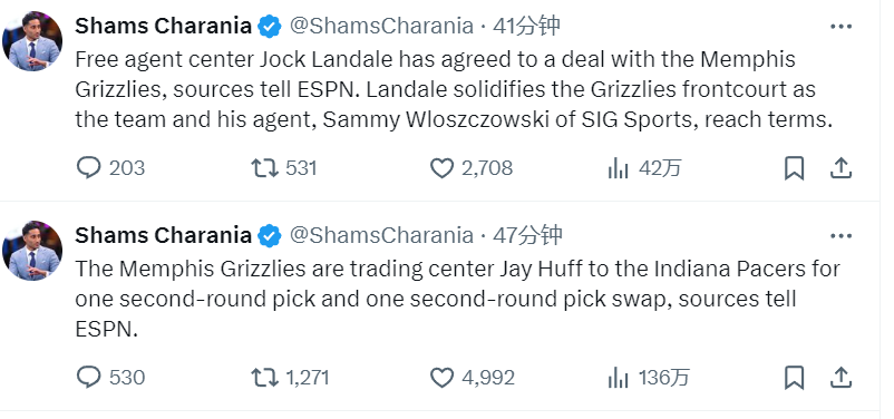 北京时间7月6日,据名记Shams报道,消息人士透露,自由球员中锋乔克-兰代尔已与灰熊队达成签约协议,后续报道称双方签下了一年底薪合同。另外,灰熊方面将通过把杰伊-赫夫送往步行者队,换回一个未来次轮签和一个次轮签互换权,为兰代尔腾出阵容名额。