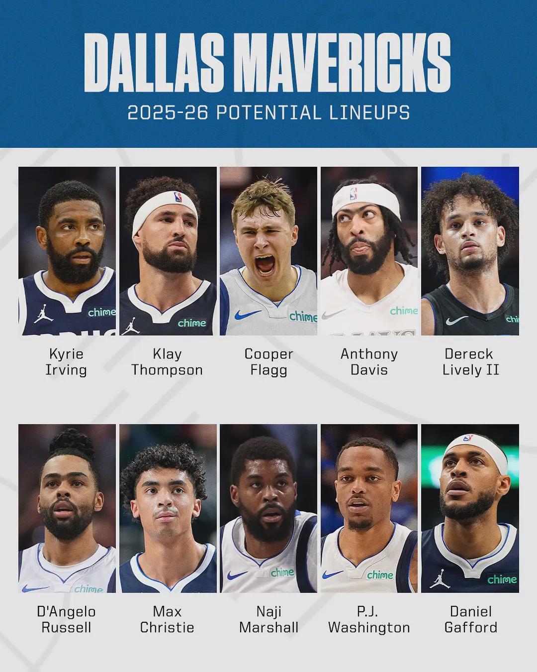 达拉斯独行侠下赛季如果核心球员都能保持健康的话,其实具备夺冠实力的。凯里欧文和安东尼戴维斯的内外线结合,具有很大的杀伤力。不过,就是不知道凯里欧文恢复健康后,能恢复到巅峰期的几成实力。如果是八九成,那就乐观很多。