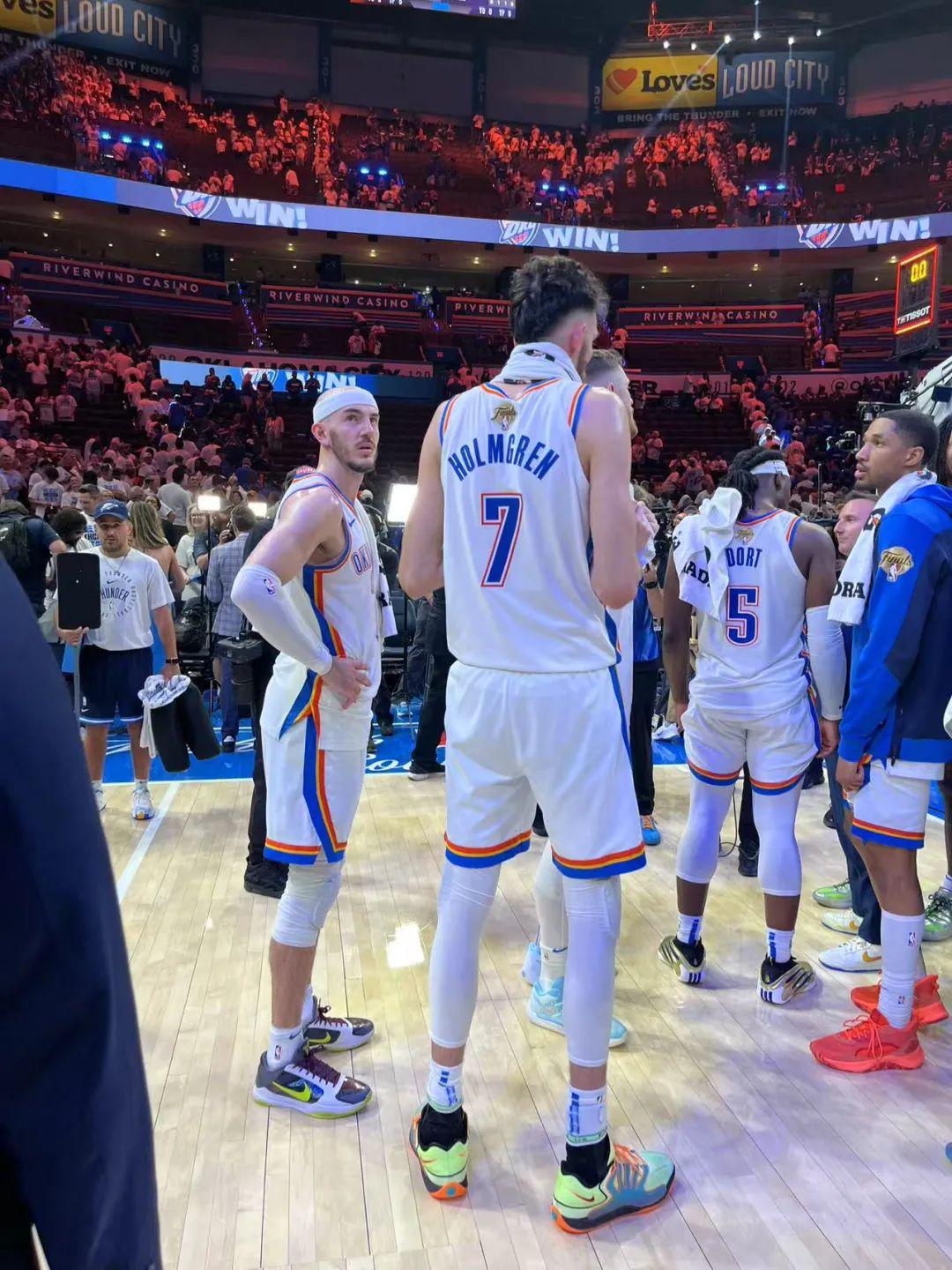 以及,虽然切特第二节的防守铺天盖地,但亚历山大今天4封盖领跑全队:切特出去时,是他在像韦德似的补盖。